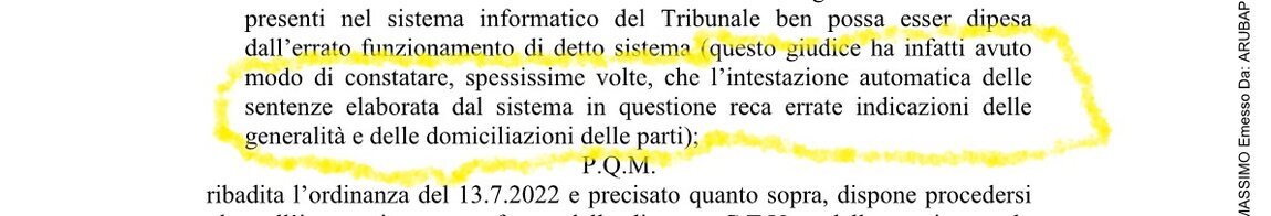 Segnalazione relativa a quanto evidenziato dal Giudice Dott. Massimo Corrias in udienza dello scorso 14 luglio del 2022 [Per leggere la pubblicazione completa premere sul titolo di quetso post]