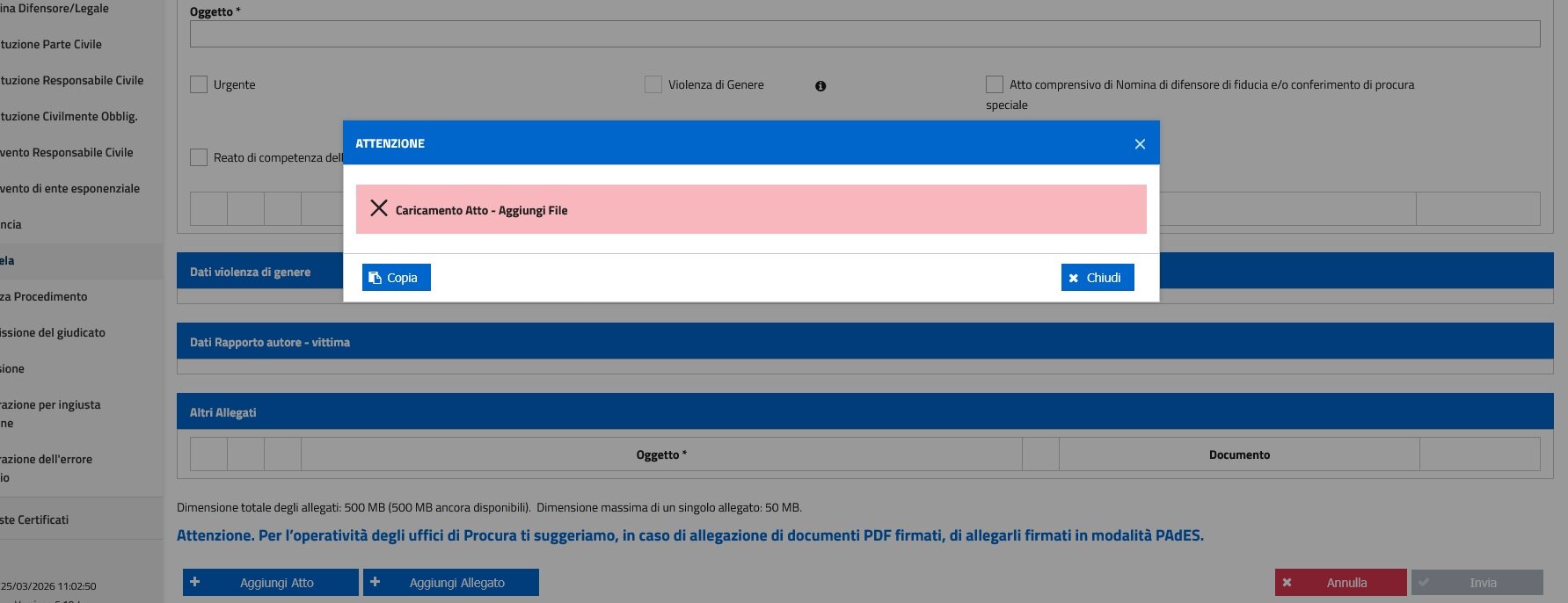 related to a really serious problem with the Italian “Portale dei depositi penali”