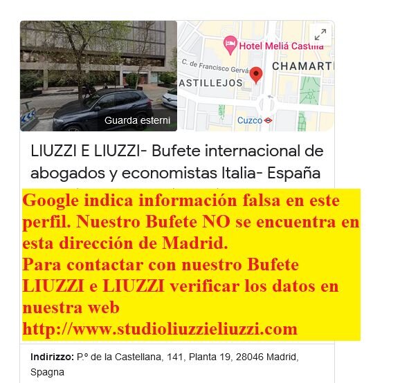Liuzzi e Liuzzi Bufete internacional de abogados y economistas- International Law & Tax Firm (Italy- Spain)- Please pay attention because we have discovered on Google there's a fake profile