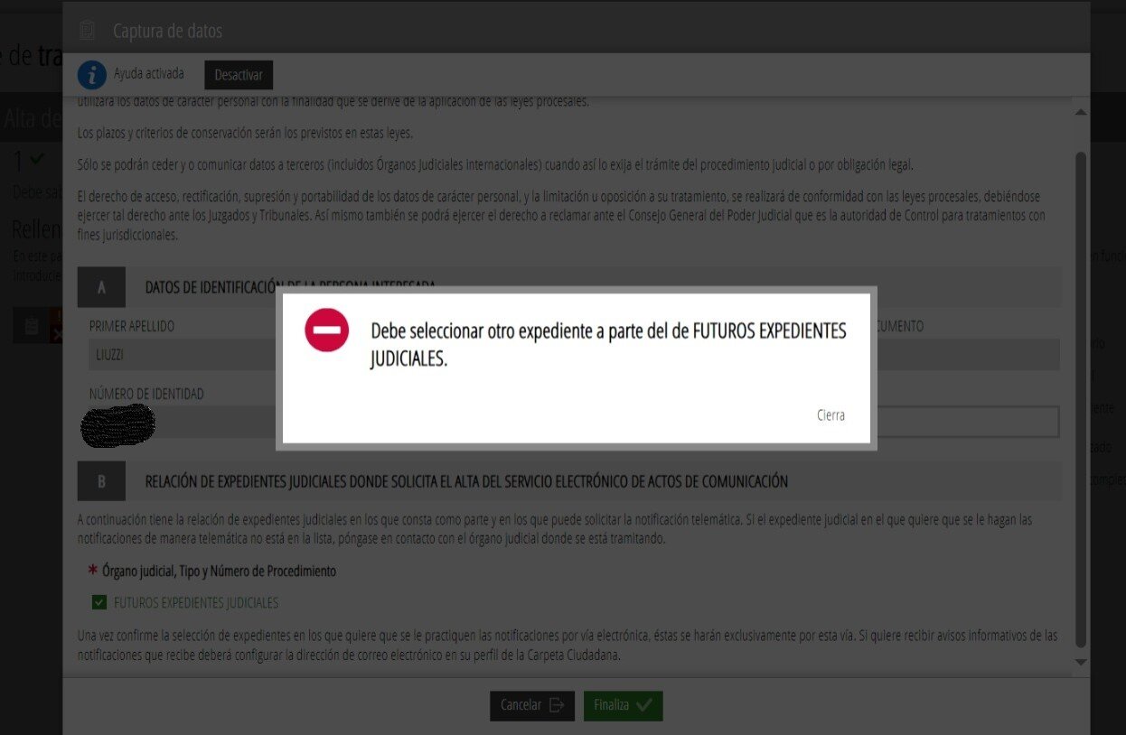 Publicación sobre la imposibilidad de darse de alta en el servicio electrónico de actos de comunicación en la Sede Judicial Electrónica de la Generalitat Valenciana