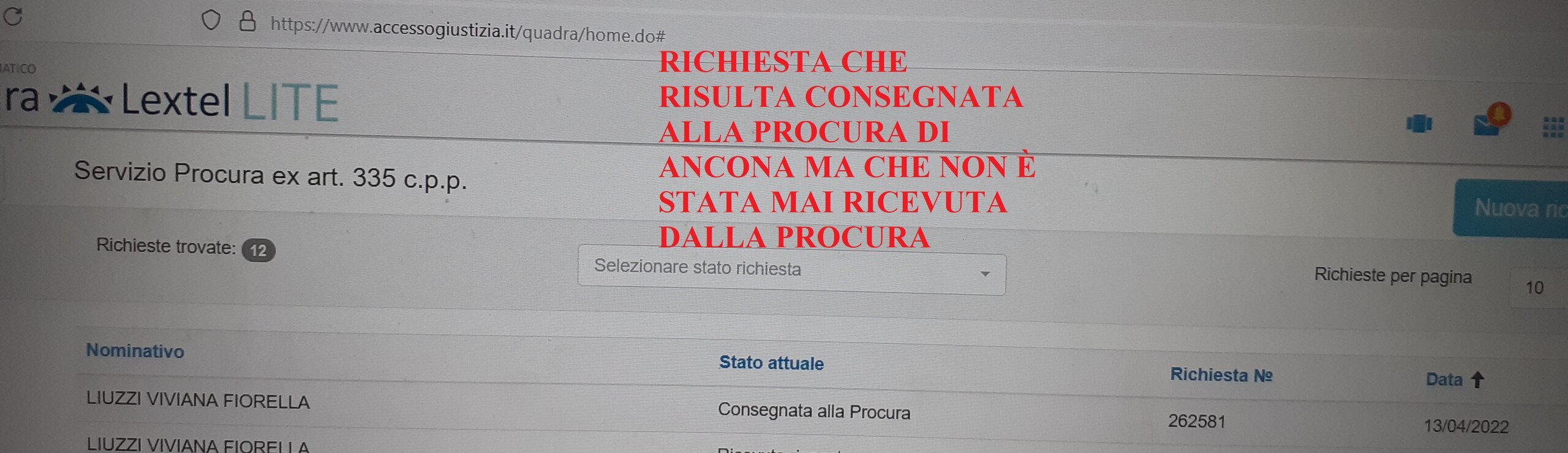 Procura della Repubblica presso il Tribunale di Ancona- Ufficio Casellario e Servizio 335 c.p.p. Quadra- Lextel (Visura s.p.a.)richieste inviate che non arrivano al destinatario ma che l'applicativo Quadra indica che sono state consegnate