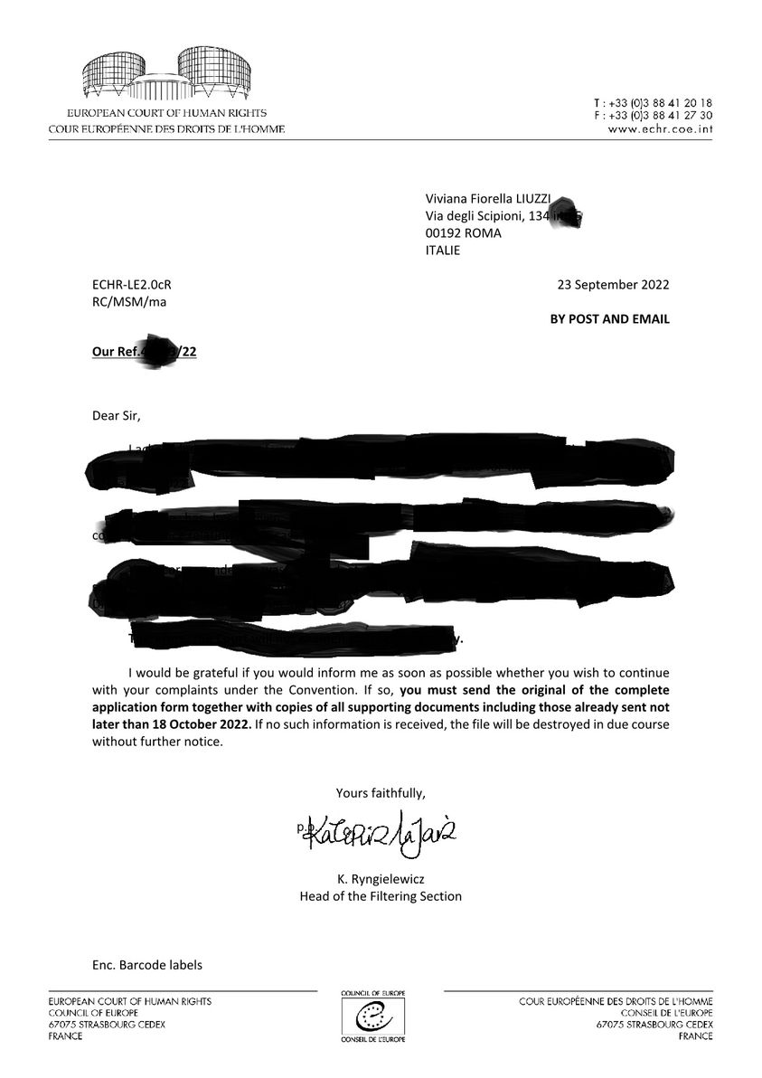 Their and my replies- (I have already informed also the CNF that is the Consiglio Nazionale Forense/ Italian National Bar Cuncil and the Ordine degli Avvocati di Roma/ Bar Association of Rome, Italy)