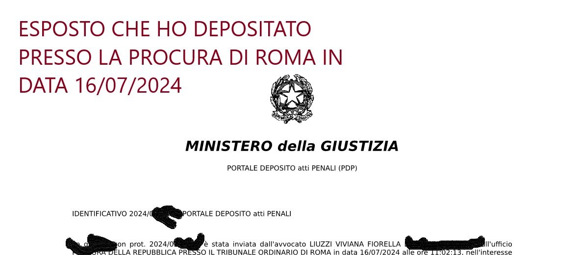 25 Gennaio 2023- [Premere sul titolo per leggere la pubblicazione completa.] Pubblicazione relativa a: ANOMALA NOTIFICA DI AVVISO ALLA PERSONA OFFESA DELLA RICHIESTA DI ARCHIVIAZIONE INVIATA IN TEORIA DALLA PROCURA DI ROMA MA CHE NON SEMBRA ASCRIVIBILE REALMENTE ALLA PROCURA (sono in attesa di conferma della Procura e dal Ministero della Giustizia)