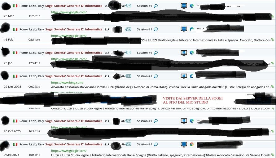 Come già accaduto nel 2022, nel 2023 e nel 2024 (fatti di cui ho parlato nei miei precedenti post), anche oggi i tecnici informatici che collaborano con il mio Studio hanno confermato, come si vede dalle foto, che dai server della SOGEI sono state effettuate visite al sito del mio Studio, tra le altre, in data 09/09/2025, in data 20/10/2025, in data 29/12/2025, in data 23/01/2026 , in data 16/02/2026 e oggi, in data 23/03/2026.